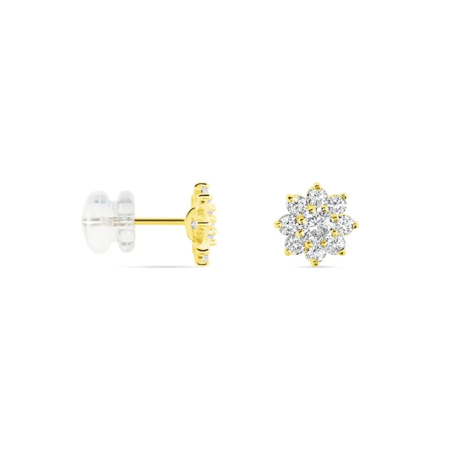 Boucles D’oreilles Or Jaune 375/1000 Fleur Oxydes De Zirconium