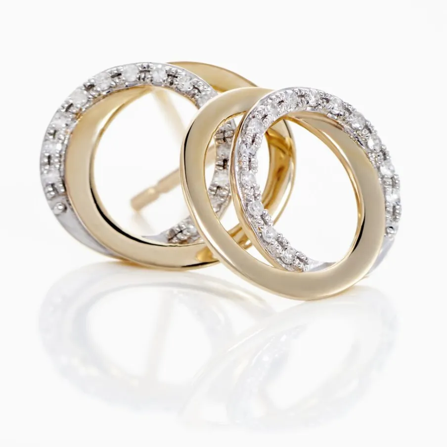 Boucles D’oreilles Or Jaune 375/1000 Forme Cercles Entrelaces Diamants
