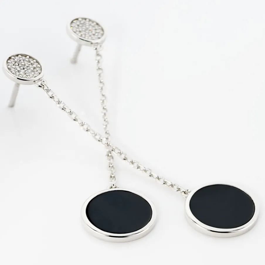 Boucles D’oreilles Argent 925/1000 Double Ceramique Et Oxyde