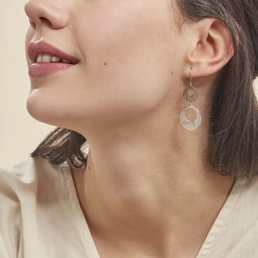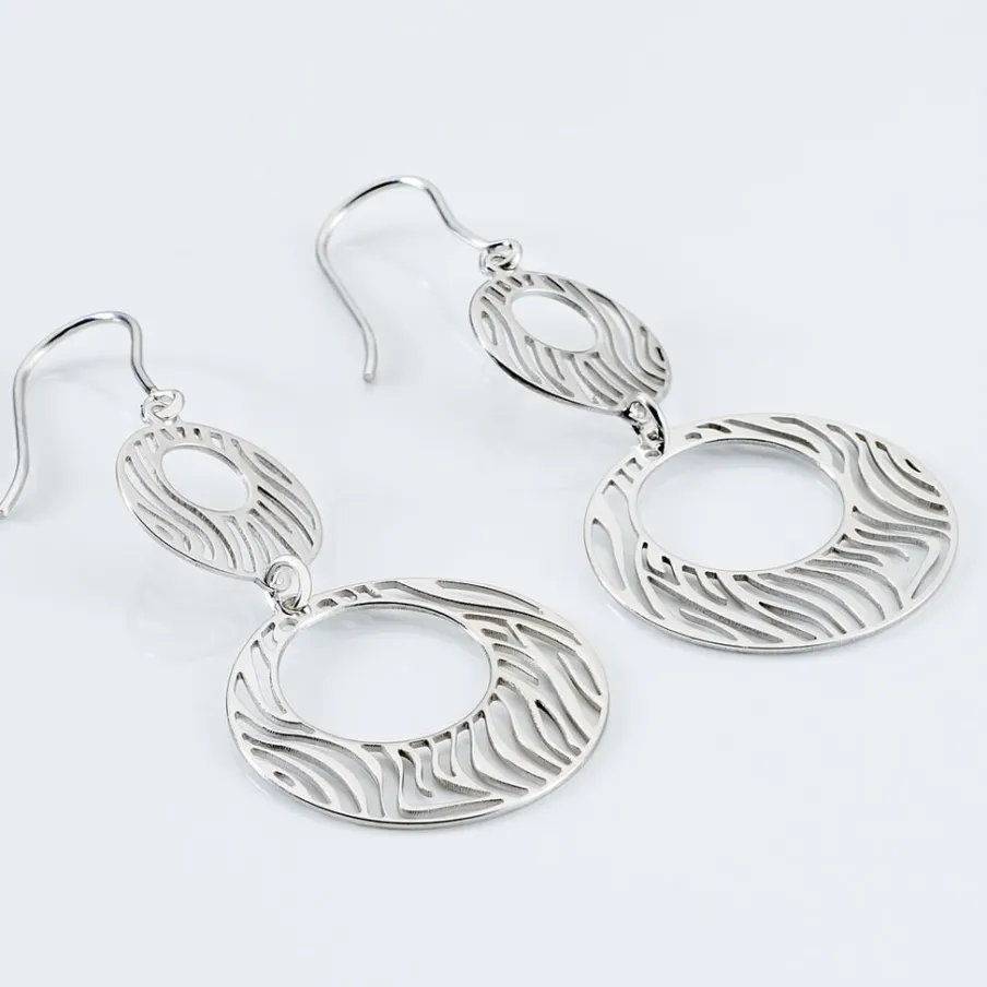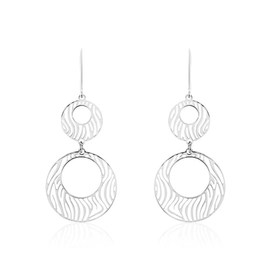 Boucles D’oreilles Pendantes Argent Blanc 925/1000 Cercles Motifs Zebres