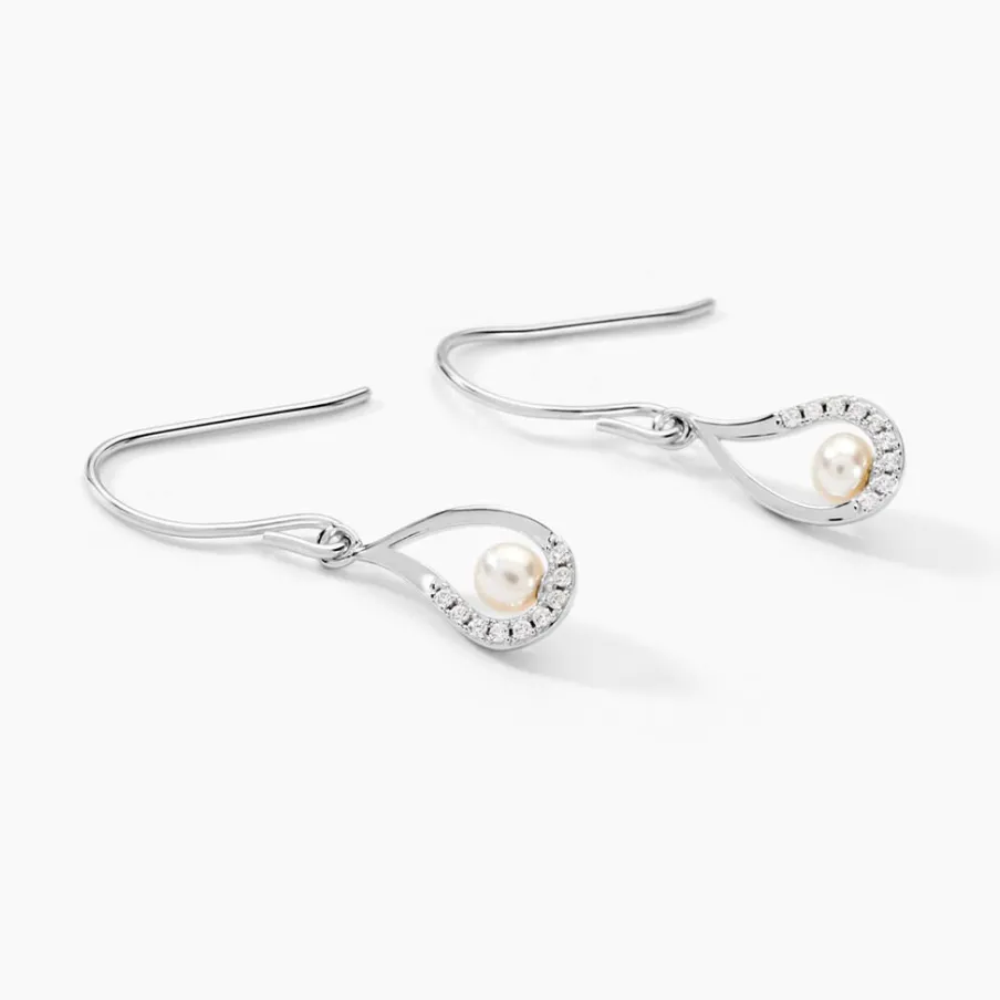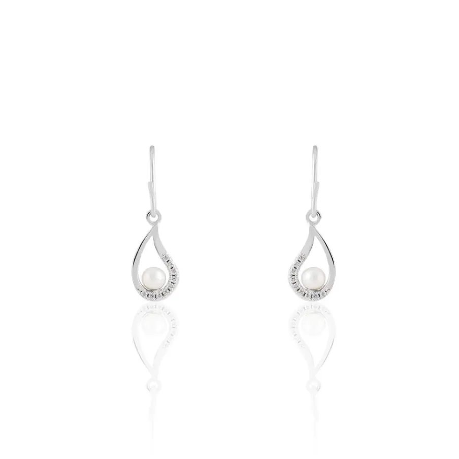 Boucles D’oreilles Argent Blanc 925/1000 Motifs Coquillages Et Perles De Culture Pavages Oxydes De Zirconium