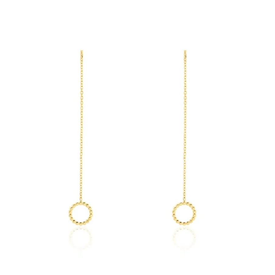 Boucles D’oreilles Pendantes Or Jaune 375/1000 Cercles Ajoures Effet Perle Chaine Maille Jaseron