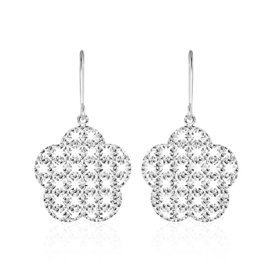 Boucles D’oreilles Or Blanc 375/1000 Pendantes Fleur Grand Modèle Constellation