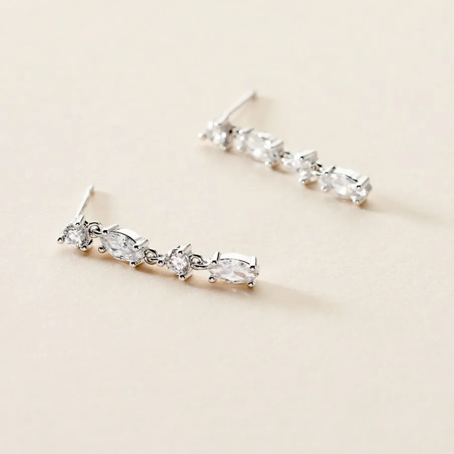 Boucles D’oreilles Pendantes Argent Blanc 925/1000 Multipierres Navettes Oxydes De Zirconium 2.6cm