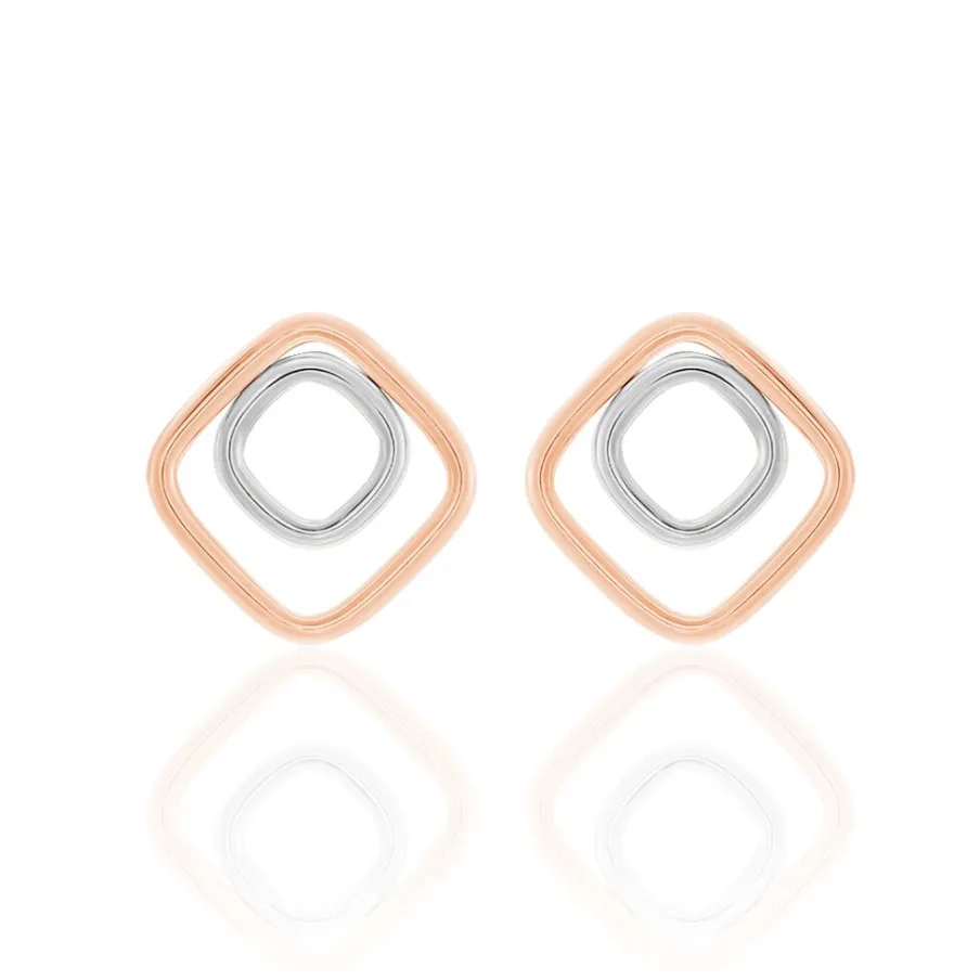Boucles D’oreilles Or Bicolore 375/1000 Double Carre Fil 1.2mm Diam 9mm