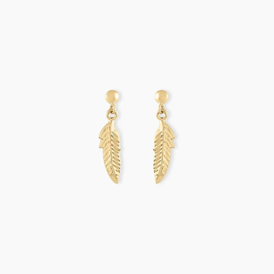 Boucles D’oreilles Or Jaune 375/1000 Pendantes Motifs Plumes