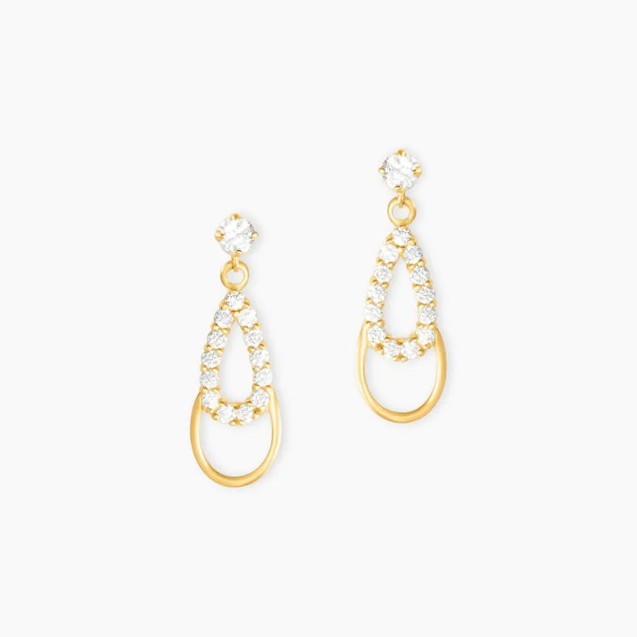 Boucles D’oreilles Or Jaune 375/1000 Celine Double Gouttes Oxydes De Zirconium