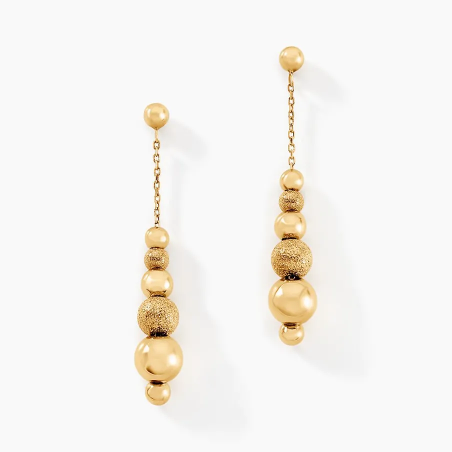 Boucles D’oreilles Pendantes Or Jaune 750/1000 Petites Et Grosses Boules Lisses Sablees Longueur 3.65cm