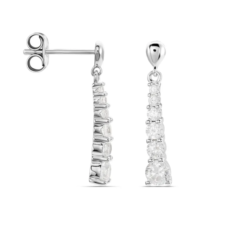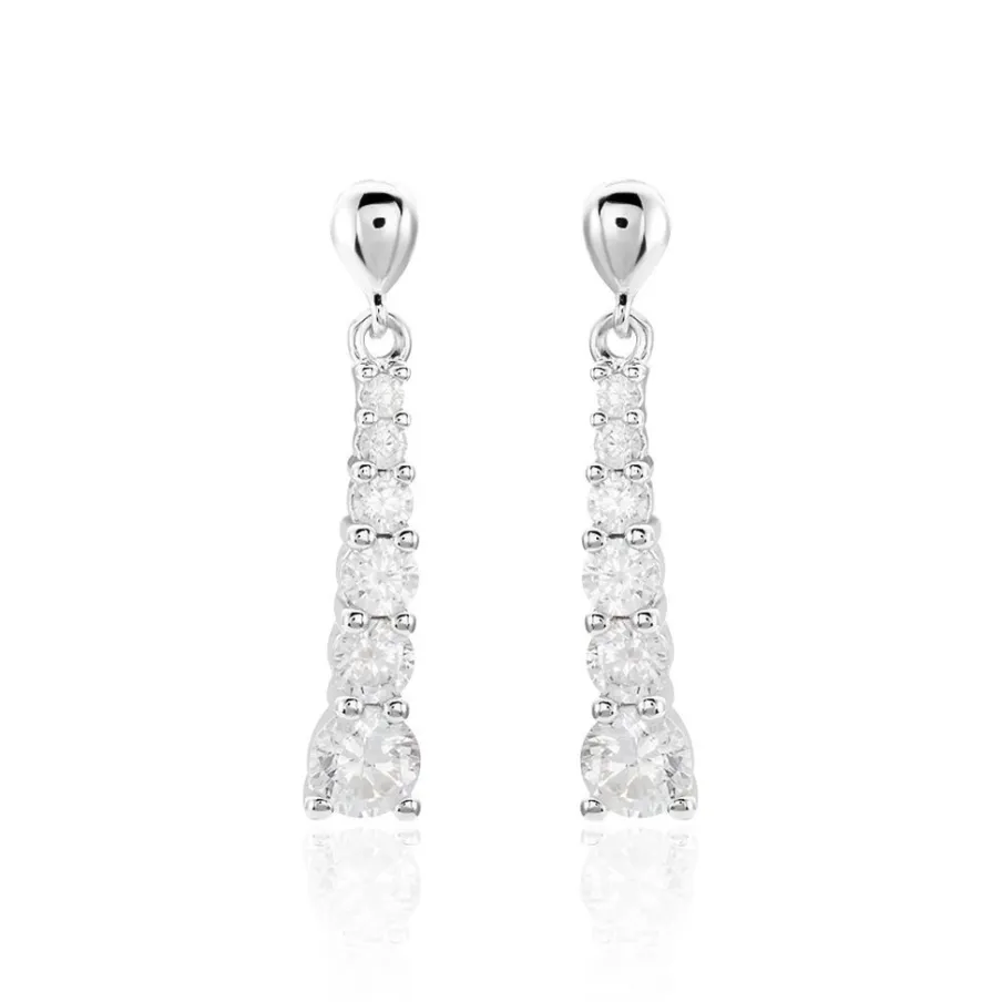 Boucle D’oreilles Pendantes Argent Rhodié 925/1000 Oxyde De Zirconium Serti 4 Griffes 2cm