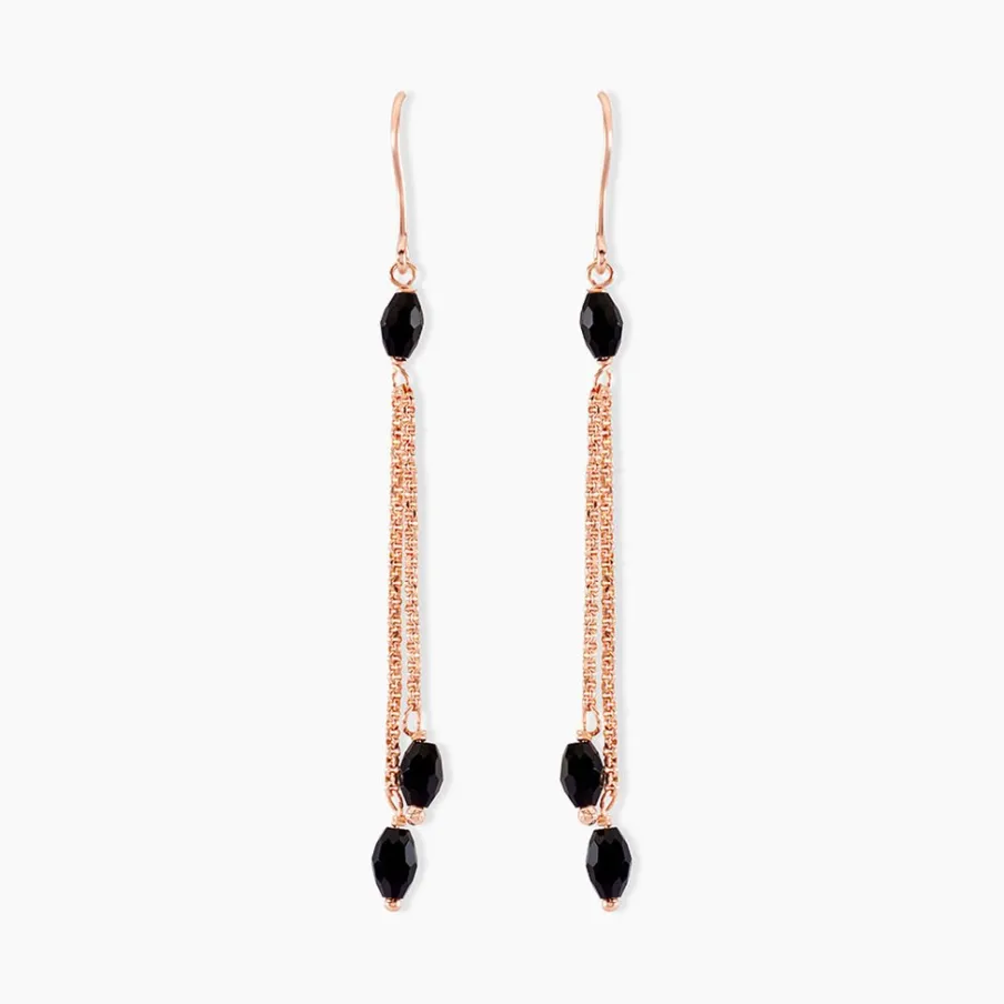 Boucles D’oreilles Pendantes Argent Rose 925/1000 Pierres Noires Mailles Forcat