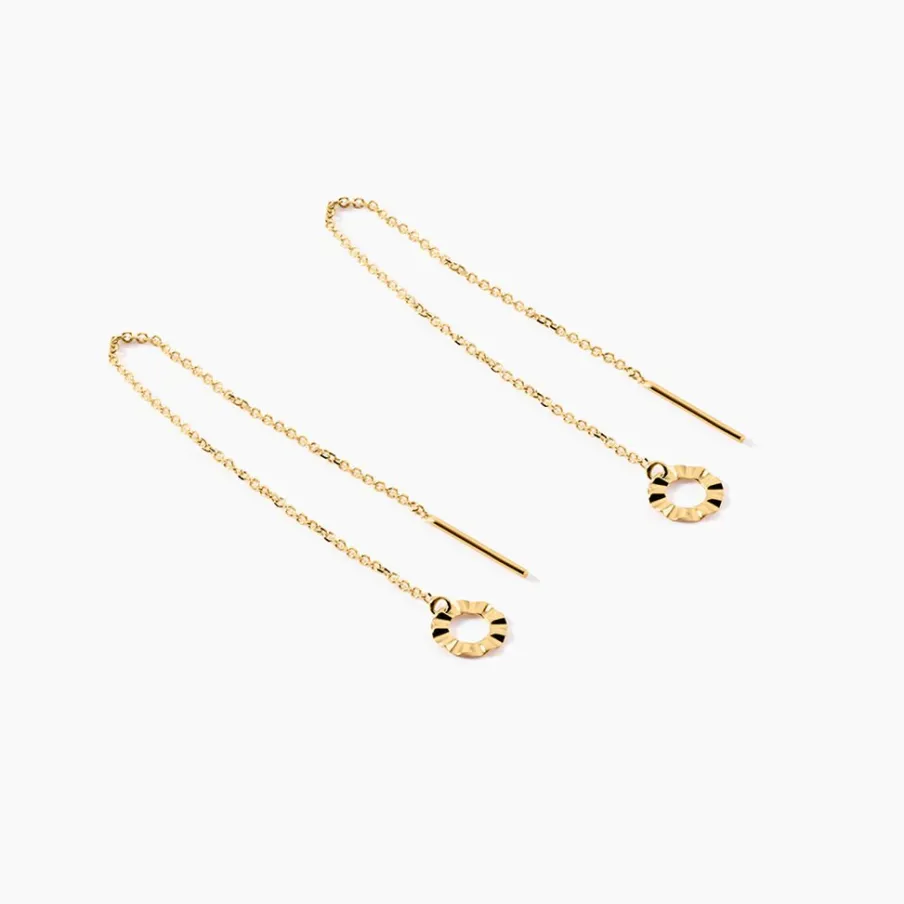 Boucles D’oreilles Pendantes Or Jaune 375/1000 Double Pendantes Cercles Froisses Forme Barette Chaine Maille Jaseron