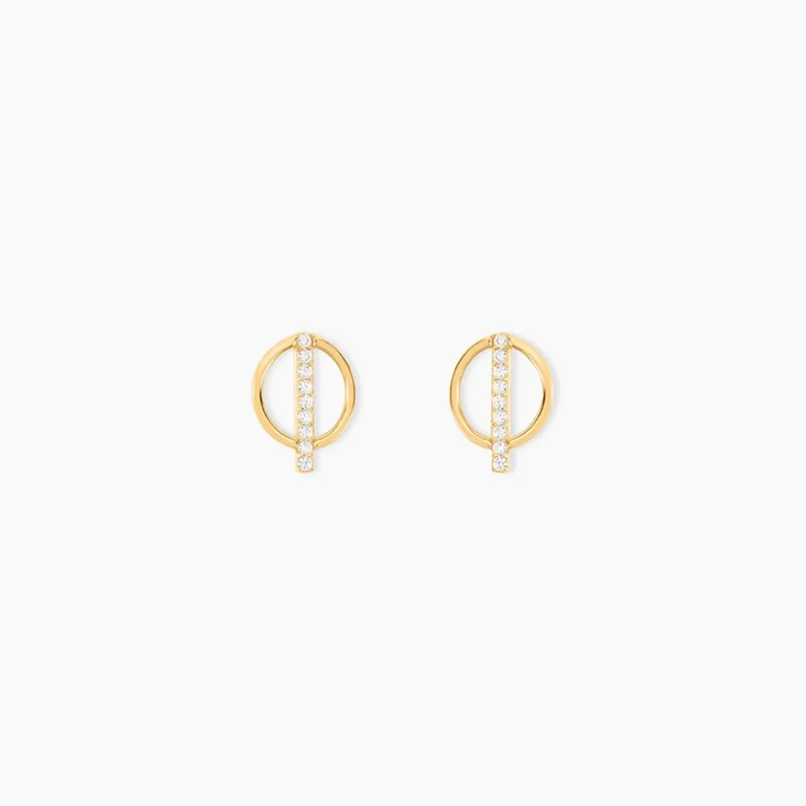 Boucles D’oreilles Or Jaune 375/1000 Cercle Barre Oxyde De Zirconium