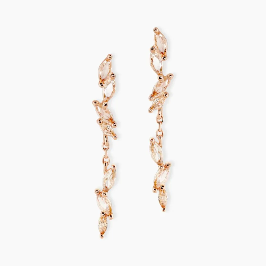 Boucles D’oreilles Pendantes Argent Rose 925/1000 Multipierres Oxydes De Zirconium Champagne Tailles Navettes