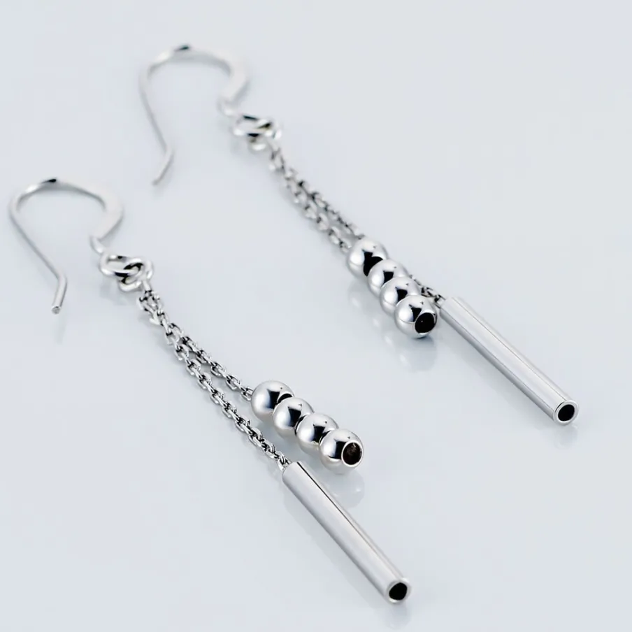 Boucles D’oreilles Pendantes Argent Blanc 925/1000 Tubes Et Boules Mailles Forcat