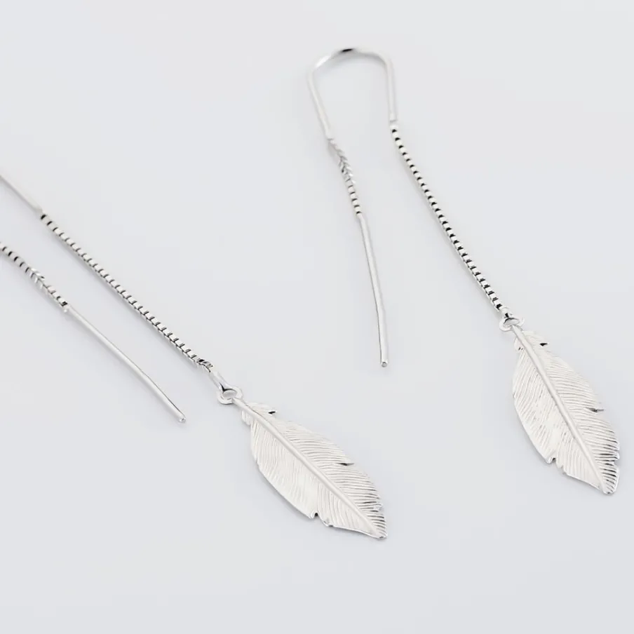 Boucles D’oreilles Pendantes Argent Blanc 925/1000 Plumes Mailles Forcat