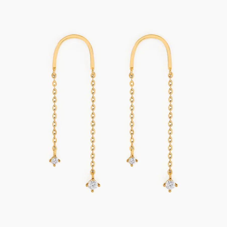 Boucles D’oreilles Pendantes Or Jaune 375/1000 Oxydes De Zirconium Serti Griffes Demi Cercle Double Chaine Forcat 3cm