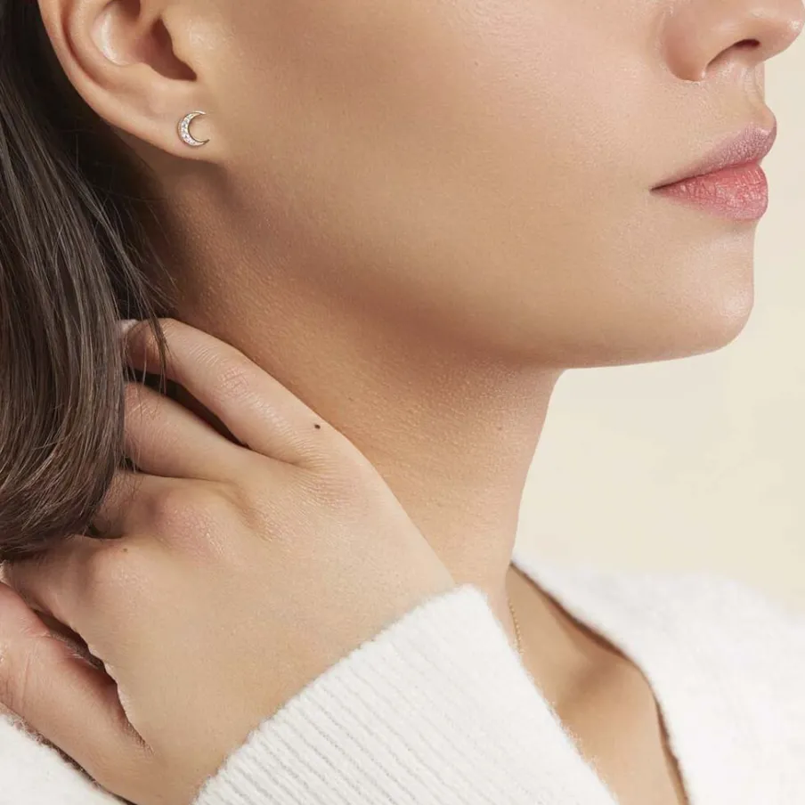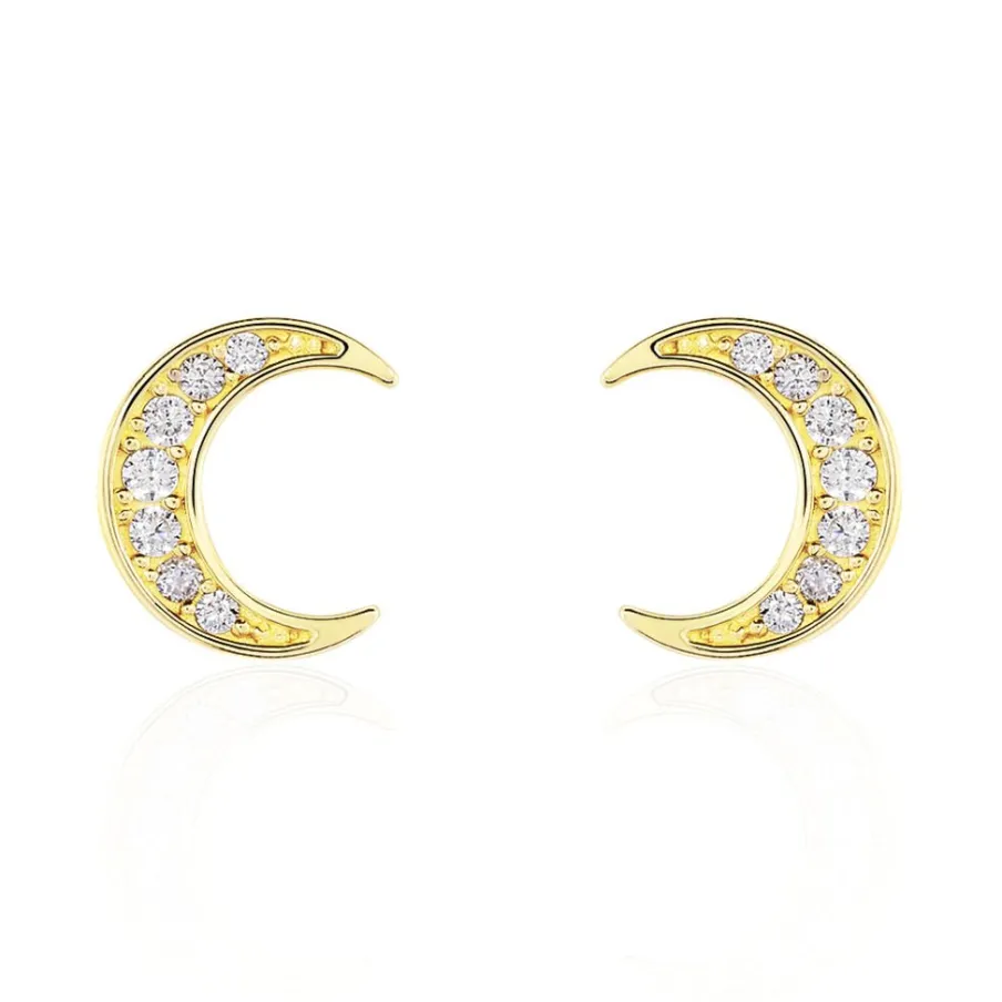 Boucles D’oreilles Or Jaune 375/1000 Lune Oxyde De Zirconium