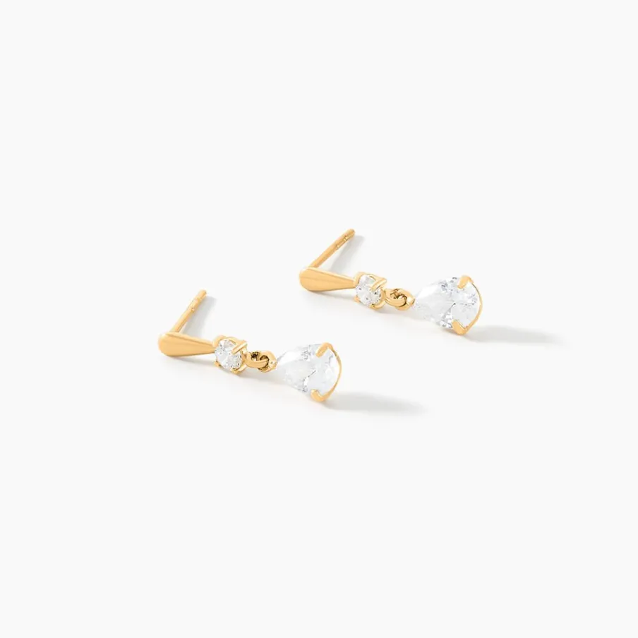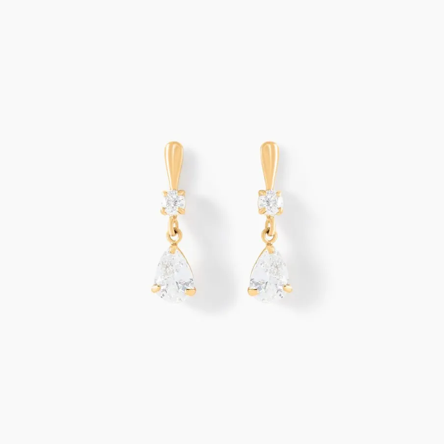 Boucles D’oreilles Pendantes Or Jaune 375/1000 Goutte Oxydes De Zirconium