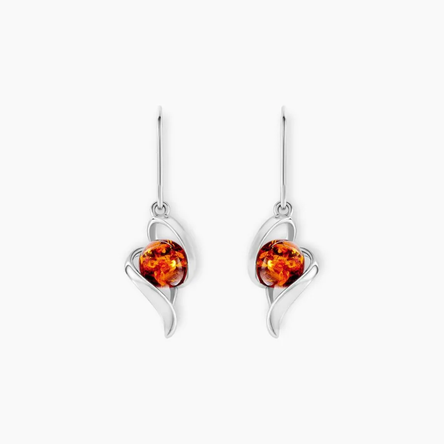 Boucles D’oreilles Argent Blanc 925/1000 Ambres Rondes