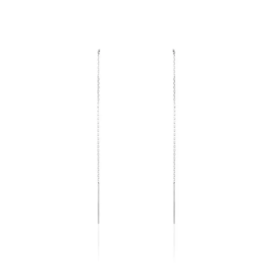 Boucles D’oreilles Pendantes Argent Blanc 925/1000 Double Pendantes Maille Forcat 6.5cm