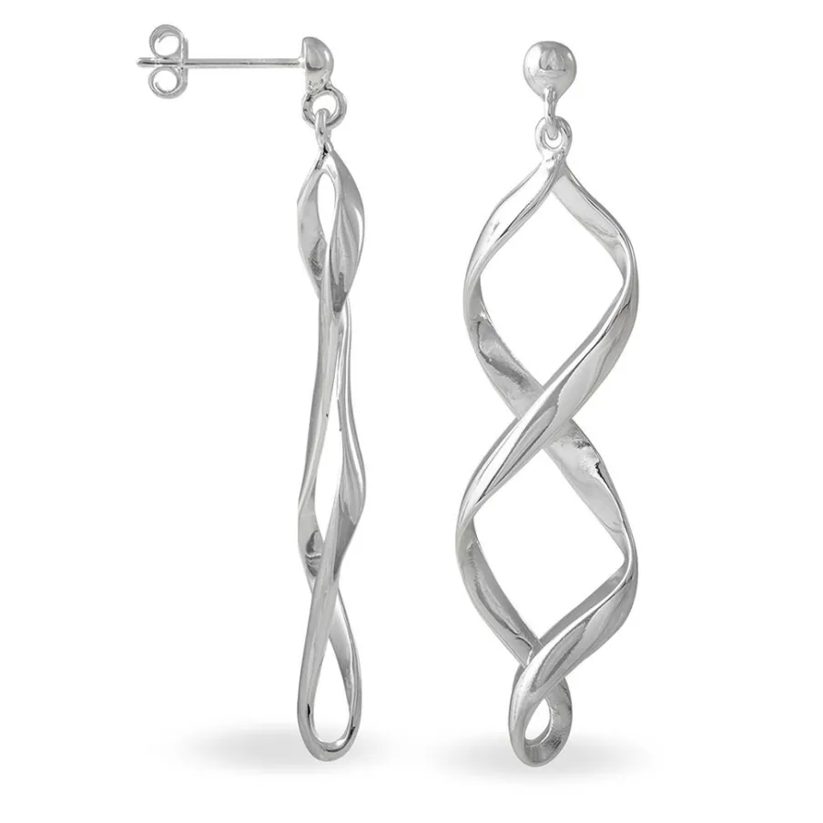 Boucles D’oreilles Pendantes Argent Blanc 925/1000 Torsadees