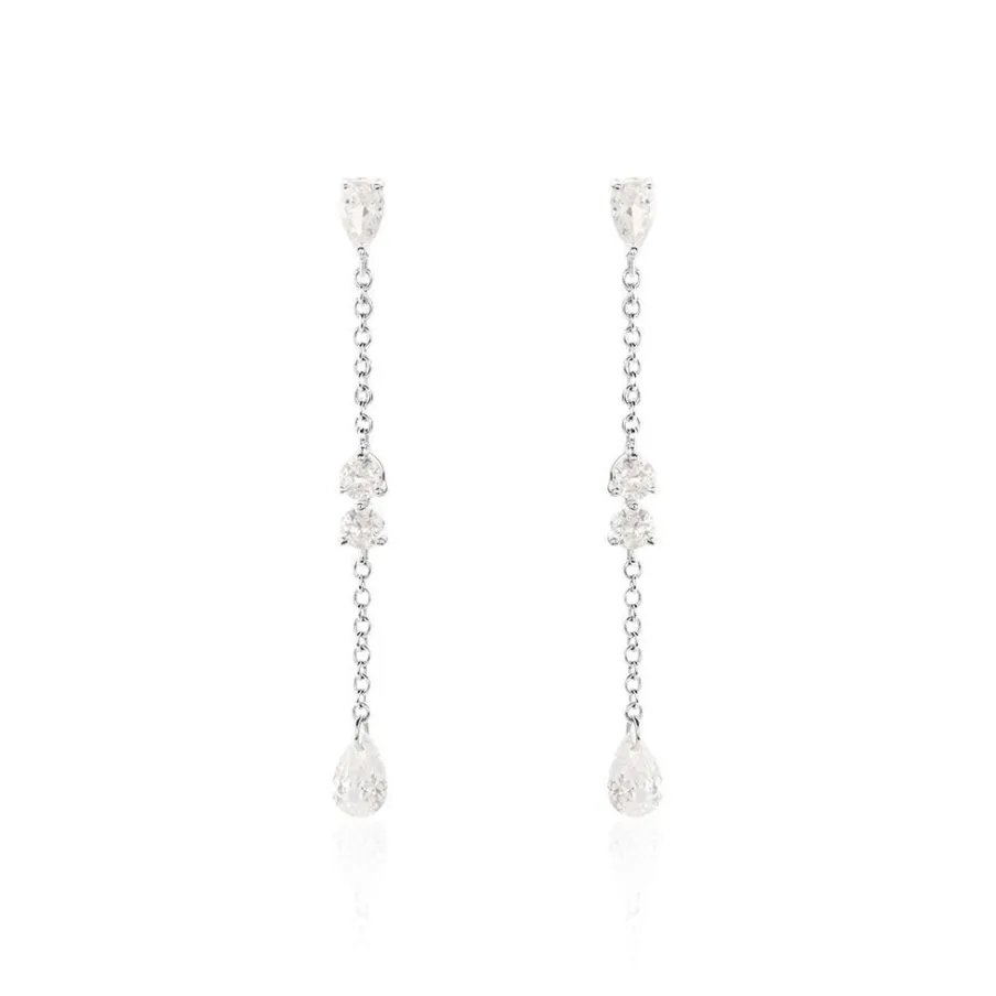 Boucles D’oreilles Pendantes Argent 925/1000 Oxydes De Zirconium Sertis Griffes