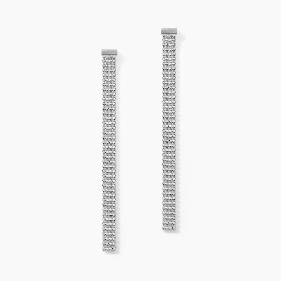 Boucles D’oreilles Pendantes Argent Blanc 925/1000 Multirang Maille Boules Largeur 3.8mm 5cm