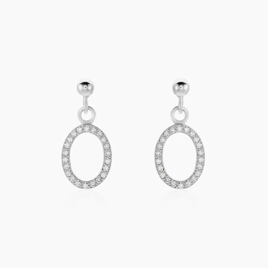 Boucles D’oreilles Pendantes Argent Blanc 925/1000 Ovales Oxydes De Zirconium