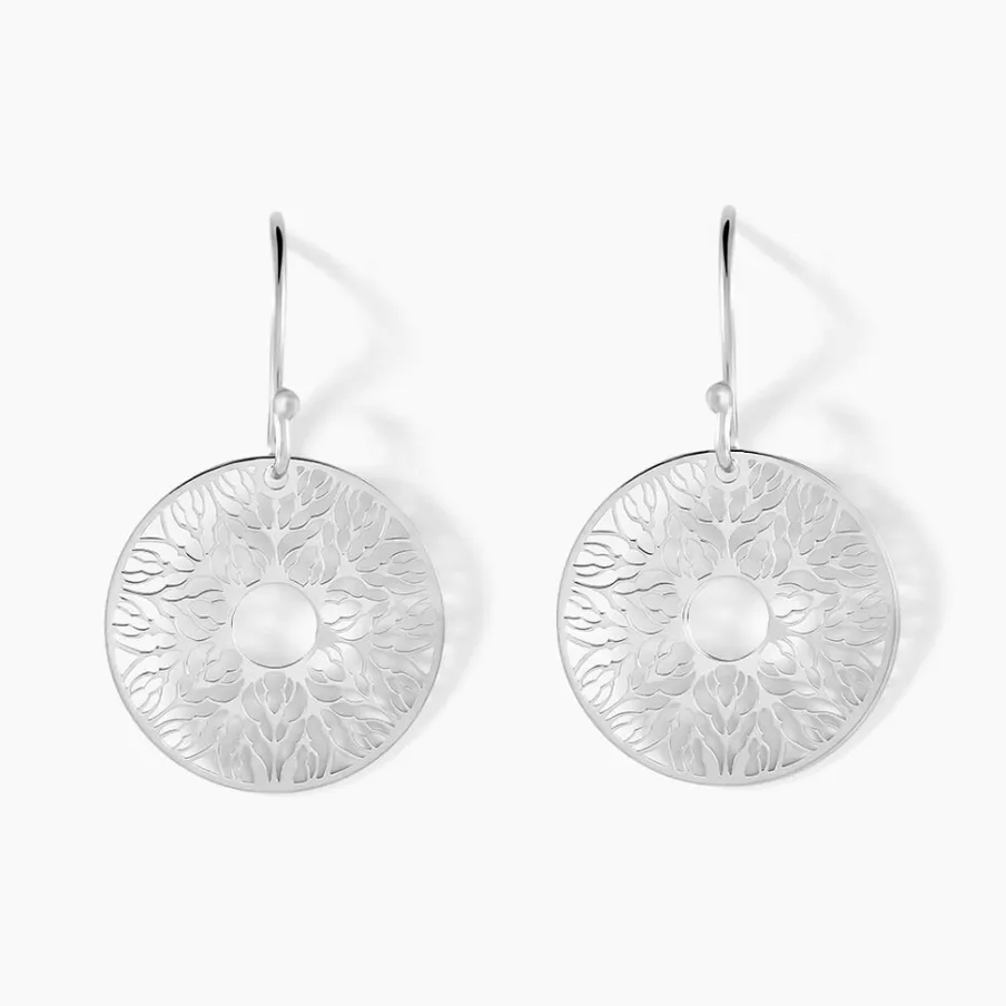 Boucles D’oreilles Pendantes Argent Blanc 925/1000 Rosaces