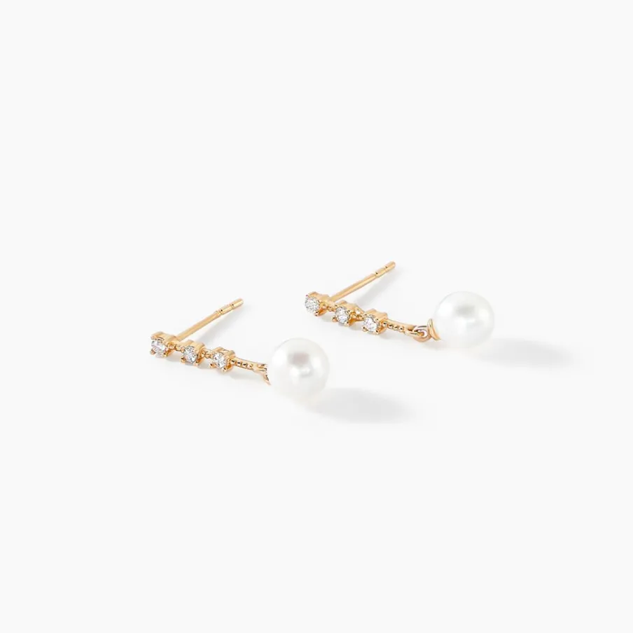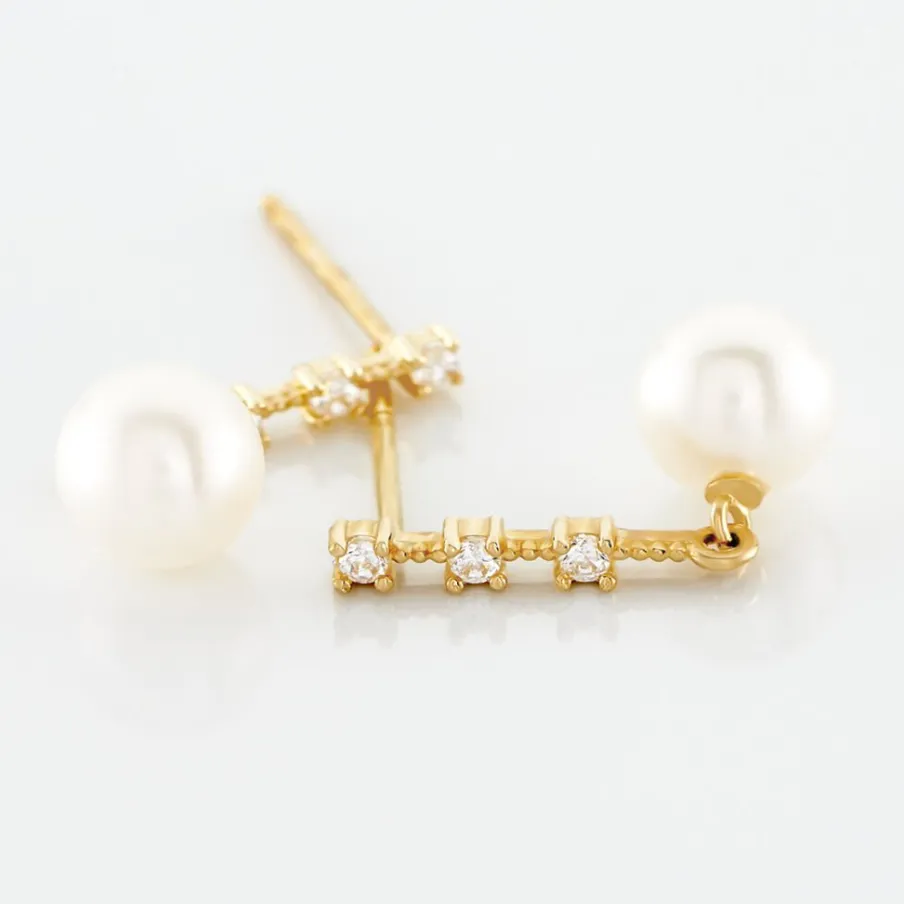 Boucles D’oreilles Or Jaune 375/1000 Barrettes Oxydes De Zirconium Et Perles De Culture 5mm