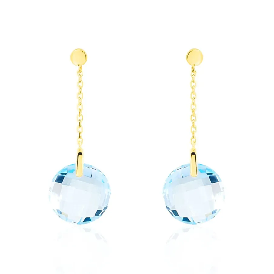 Boucles D’oreilles Or Jaune 375/1000 Pendantes Topazes