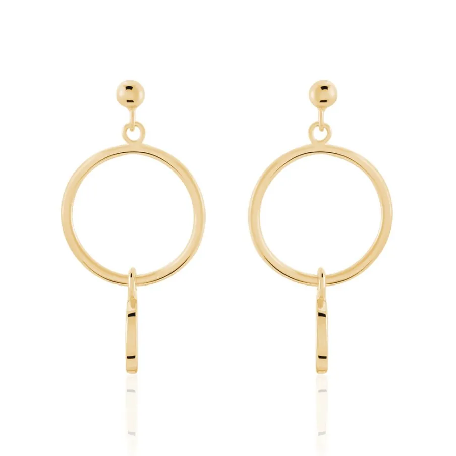 Boucles D’oreilles Pendantes Plaqué Or Jaune Cercles Ajoures Et Pastille 艙il
