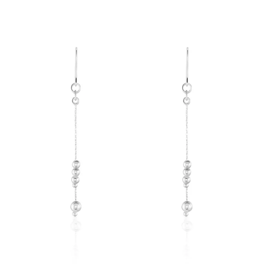 Boucles D’oreilles Pendantes Argent Blanc 925/1000 Boules Mailles Paloma