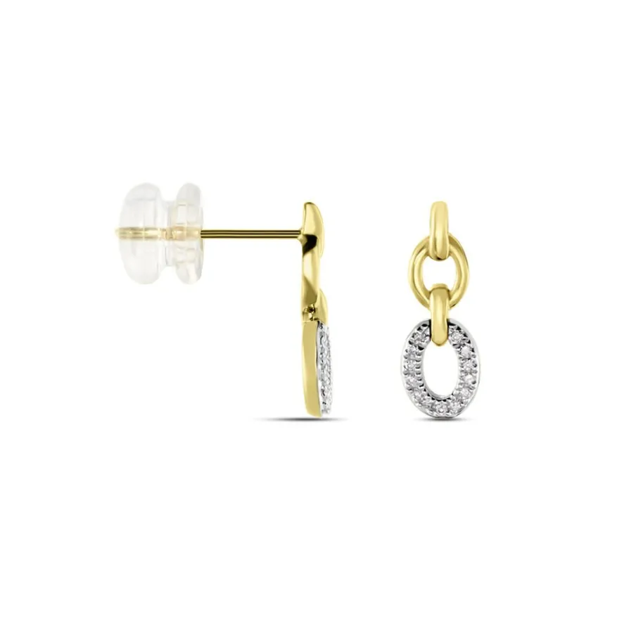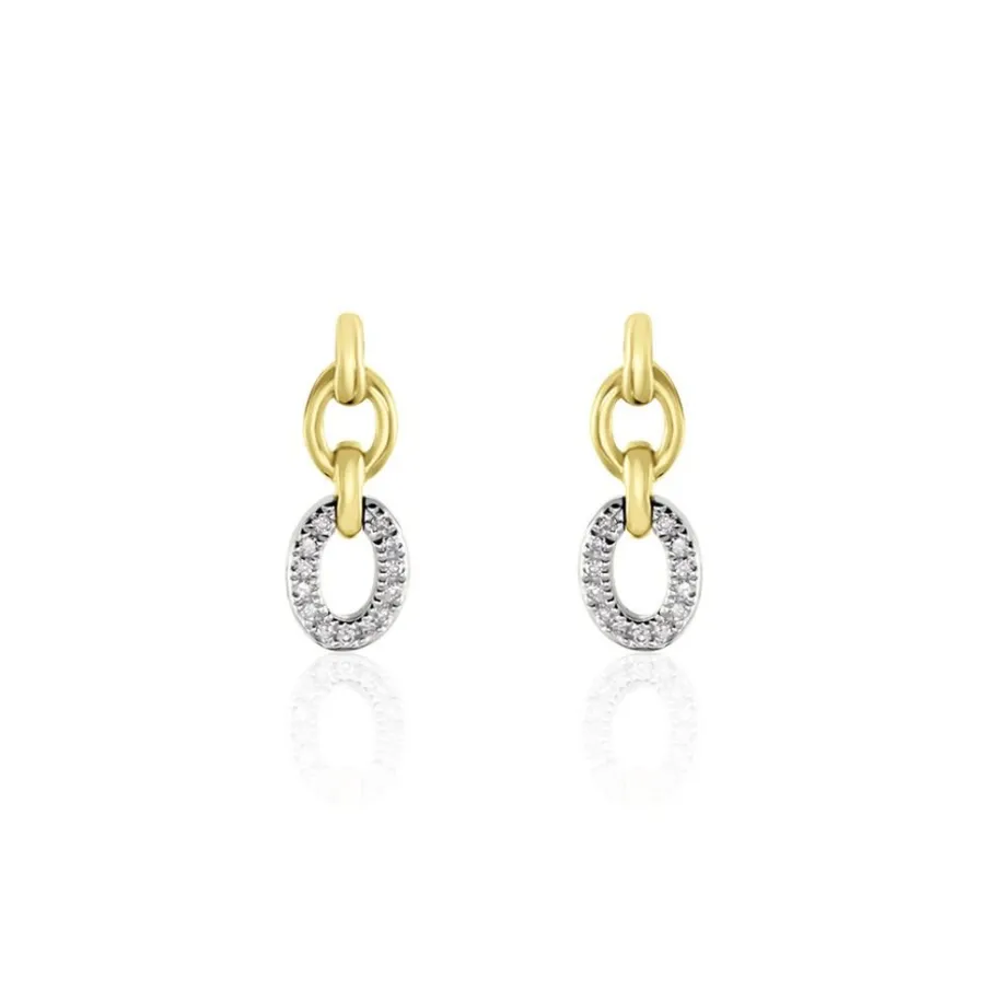 Boucles D’oreilles Pendantes Or Jaune 375/1000 Forme Double Cercle Pavage Diamants