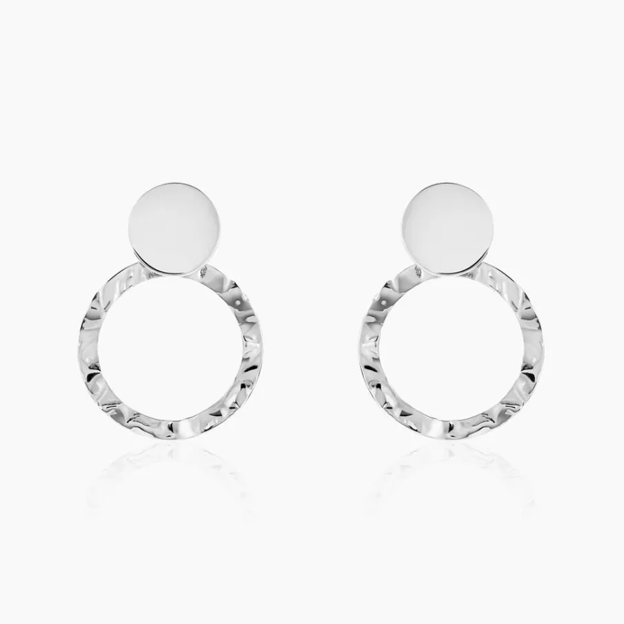 Boucles D’oreilles Pendantes Argent Blanc 925/1000 Cercles Ajourés Effet Martelé