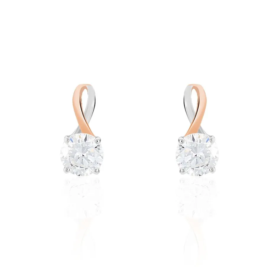 Boucles D’oreilles Or Bicolore Blanc Et Rose 375/1000 Oxydes De Zirconium Centraux 5.2mm