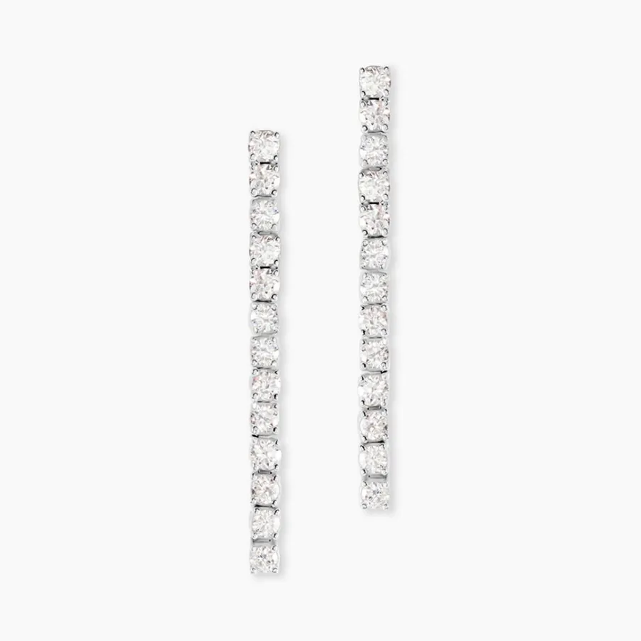 Boucles D’oreilles Pendantes Or Blanc 750/1000 Riviere De Diamants Synthetiques Sertis Griffes