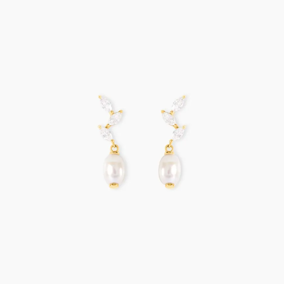 Boucles D’Oreilles Pendantes Or Jaune 375/1000 Perle De Culture Baroque 5Mm Accompagne Navette Oxyde De Zirconium