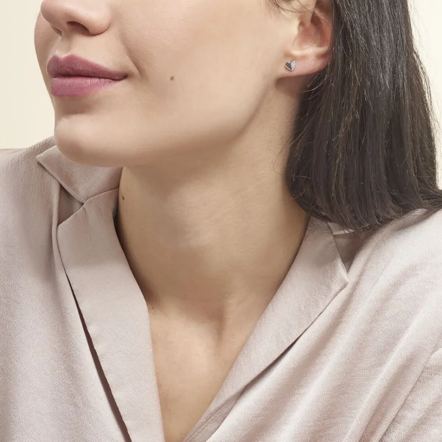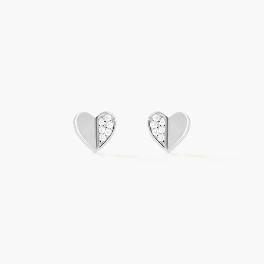 Boucles D’oreilles Argent Blanc 925/1000 Coeurs Oxydes De Zirconium
