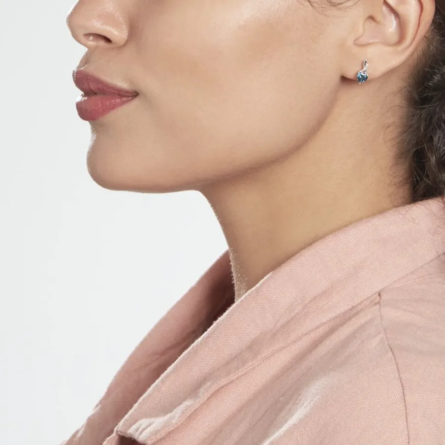 Boucles D’oreilles Or Blanc 375/1000 Topazes London Blue Formes C艙urs Et Oxydes De Zirconium