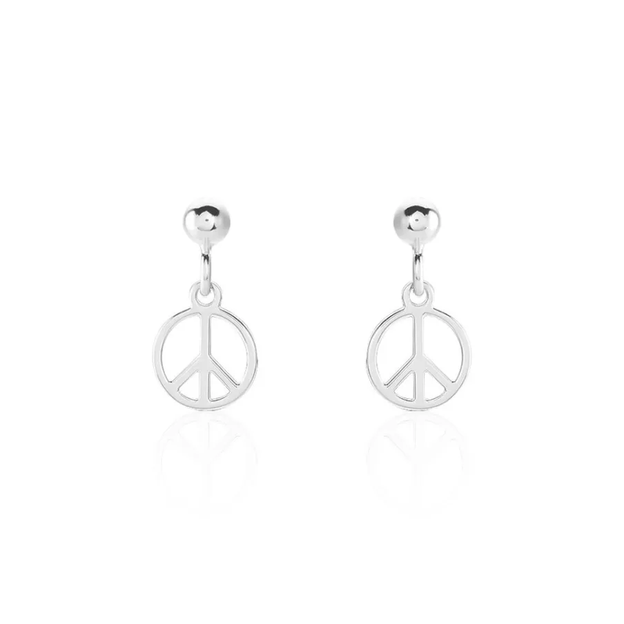 Boucles D’oreilles Pendantes Argent Blanc 925/1000 Motifs Peace