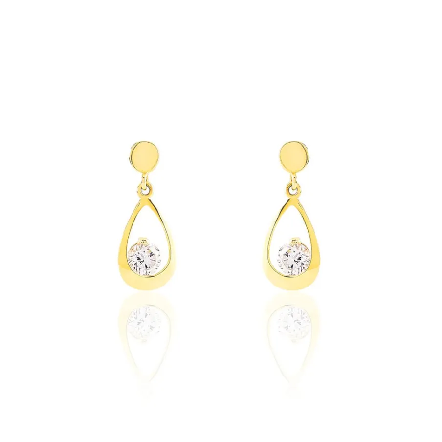 Boucles D’oreilles Or Jaune 375/1000 Forme Goutte Ajourée Oxyde De Zirconium Central