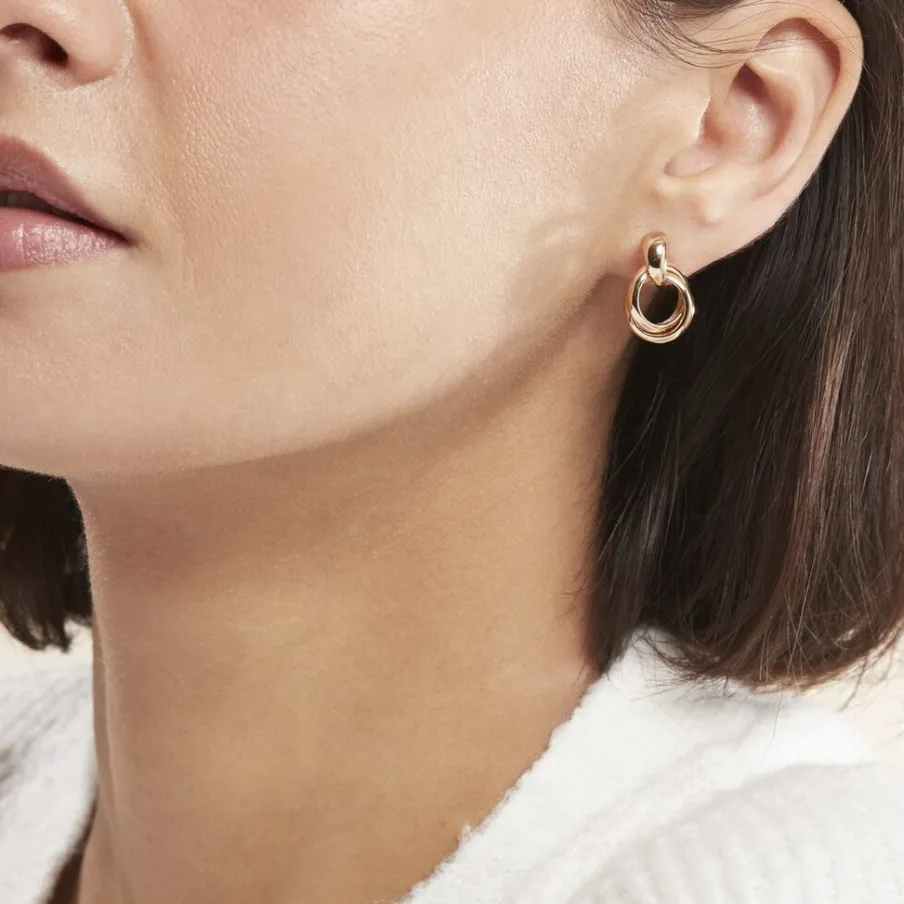 Boucles D’oreilles Pendantes Plaqué Or Jaune Cercles Entrelacés