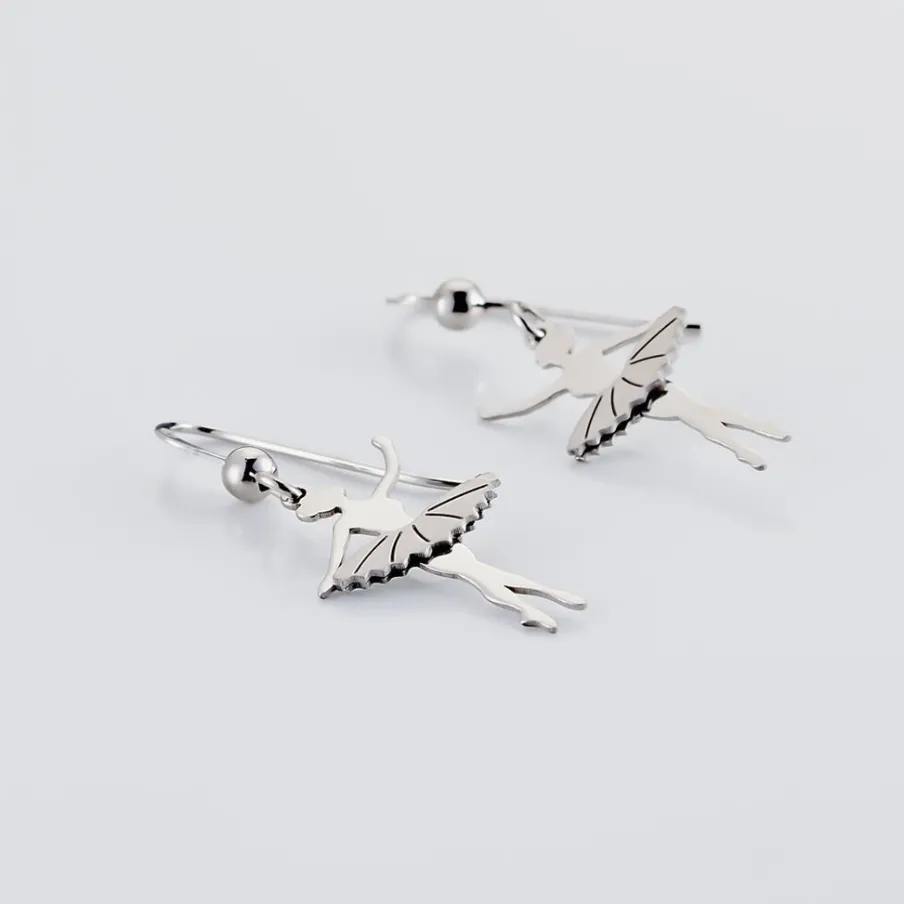 Boucles D’oreilles Pendantes Argent Blanc 925/1000 Danseuses Finition Lisse Et Brosse