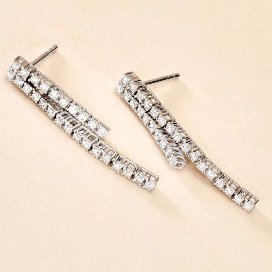 Boucles D’oreilles Pendantes Or Blanc 750/1000 Rivières De Diamants Sertis Griffes