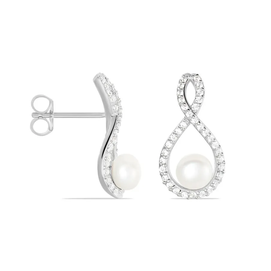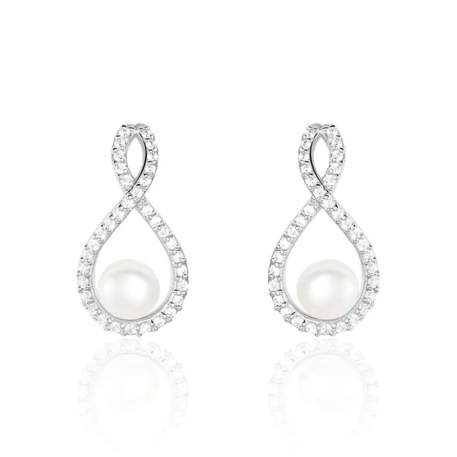 Boucles D’oreilles Argent Blanc 925/1000 Perles De Cultures Nacre 5/5.5mm Vrillees Oxydes De Zirconium