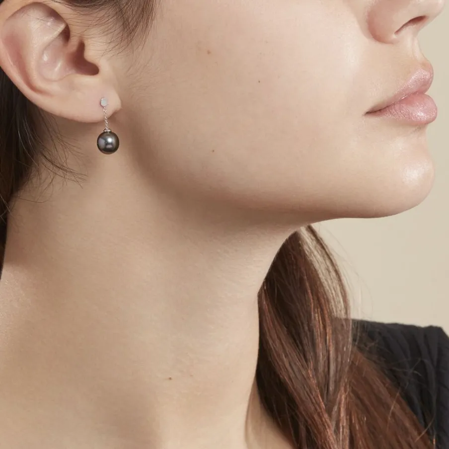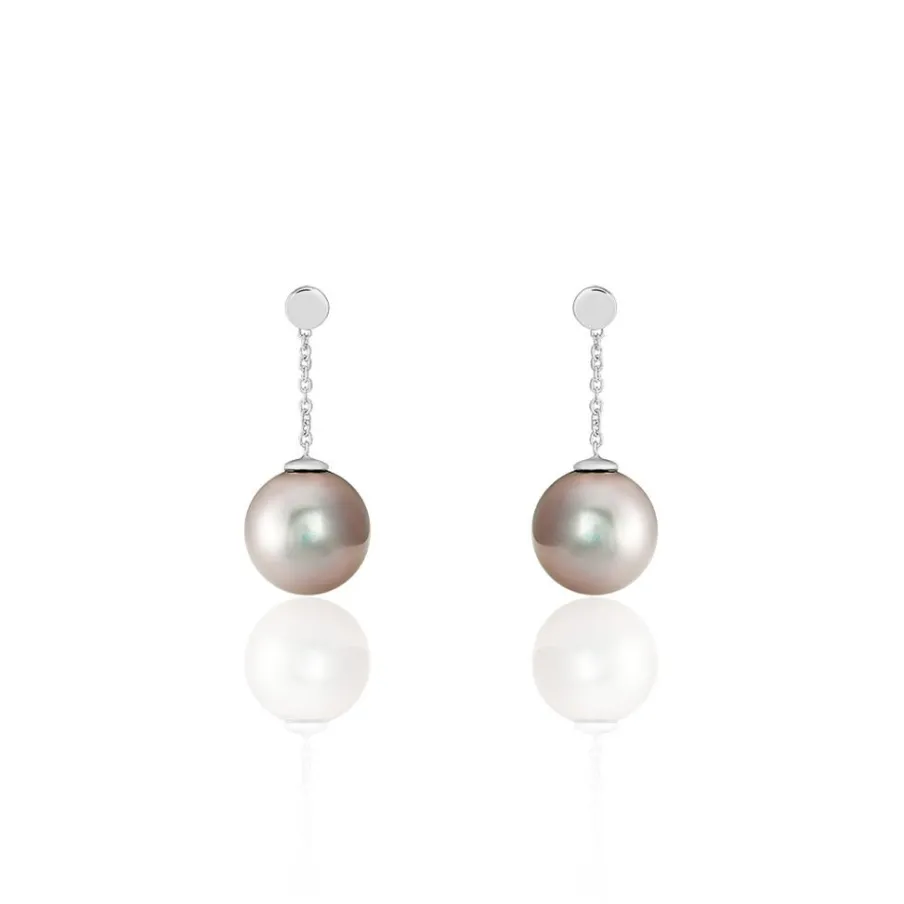 Boucles D’oreilles Or Blanc 375/1000 Perle De Culture Mers Du Sud Tahiti 8/9mm Semi-ronde