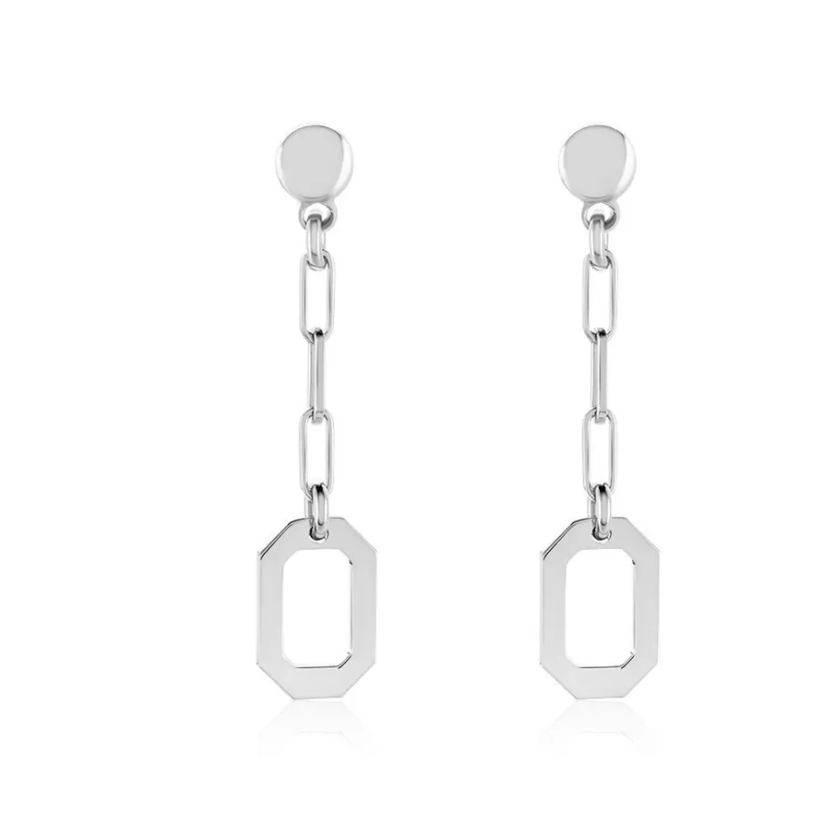 Boucles D’oreilles Pendantes Argent Blanc 925/1000 Maillons Hexagonaux Maille Cheval Largeur 2mm
