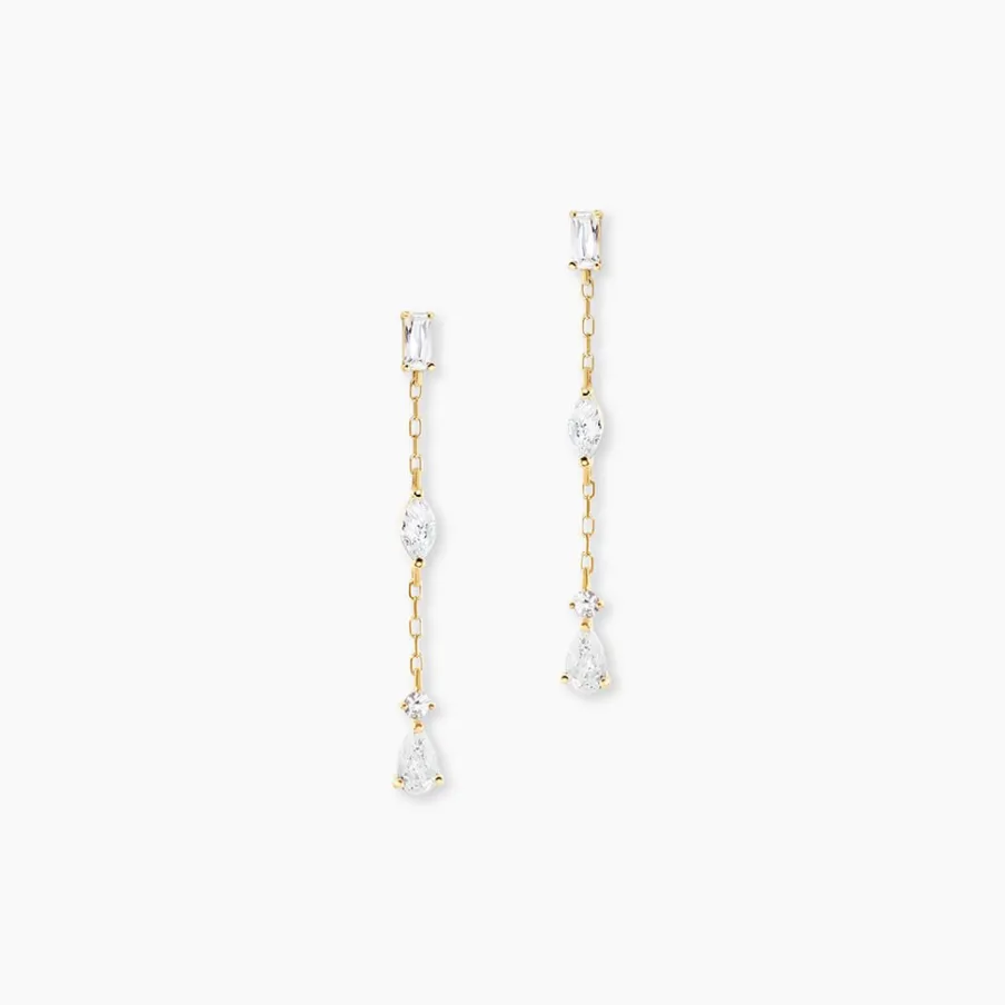 Boucles D’Oreilles Pendantes Or Jaune 375/1000 Multipierre Oxyde De Zirconium Serti Griffes