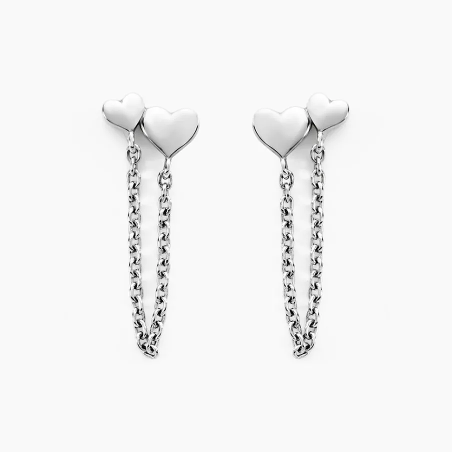 Boucles D’oreilles Pendantes Argent Blanc 925/1000 Double C艙ur Chaîne Forçat